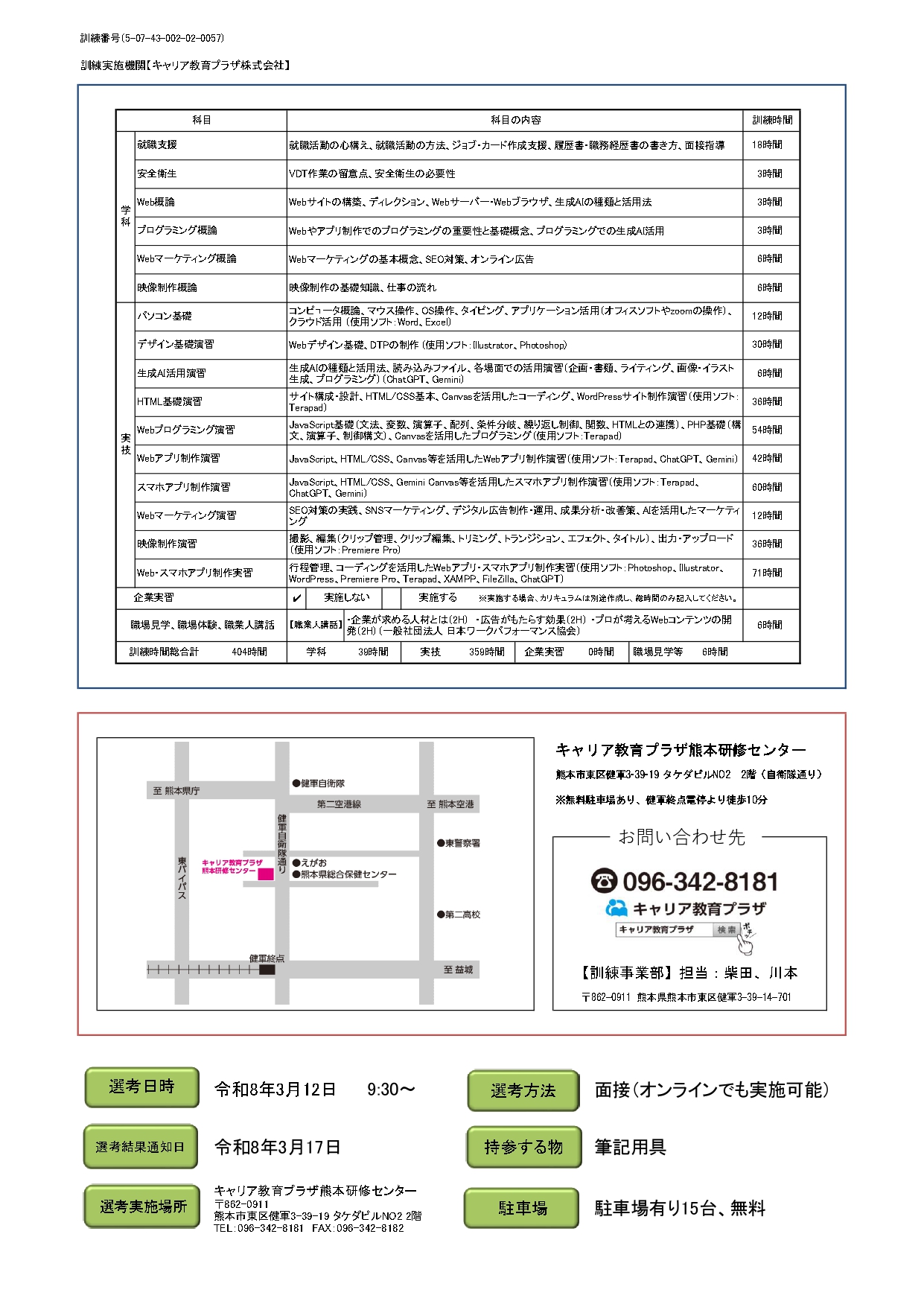 【訓練教室】当社熊本研修センター(熊本市東区健軍3-39-19-2F)