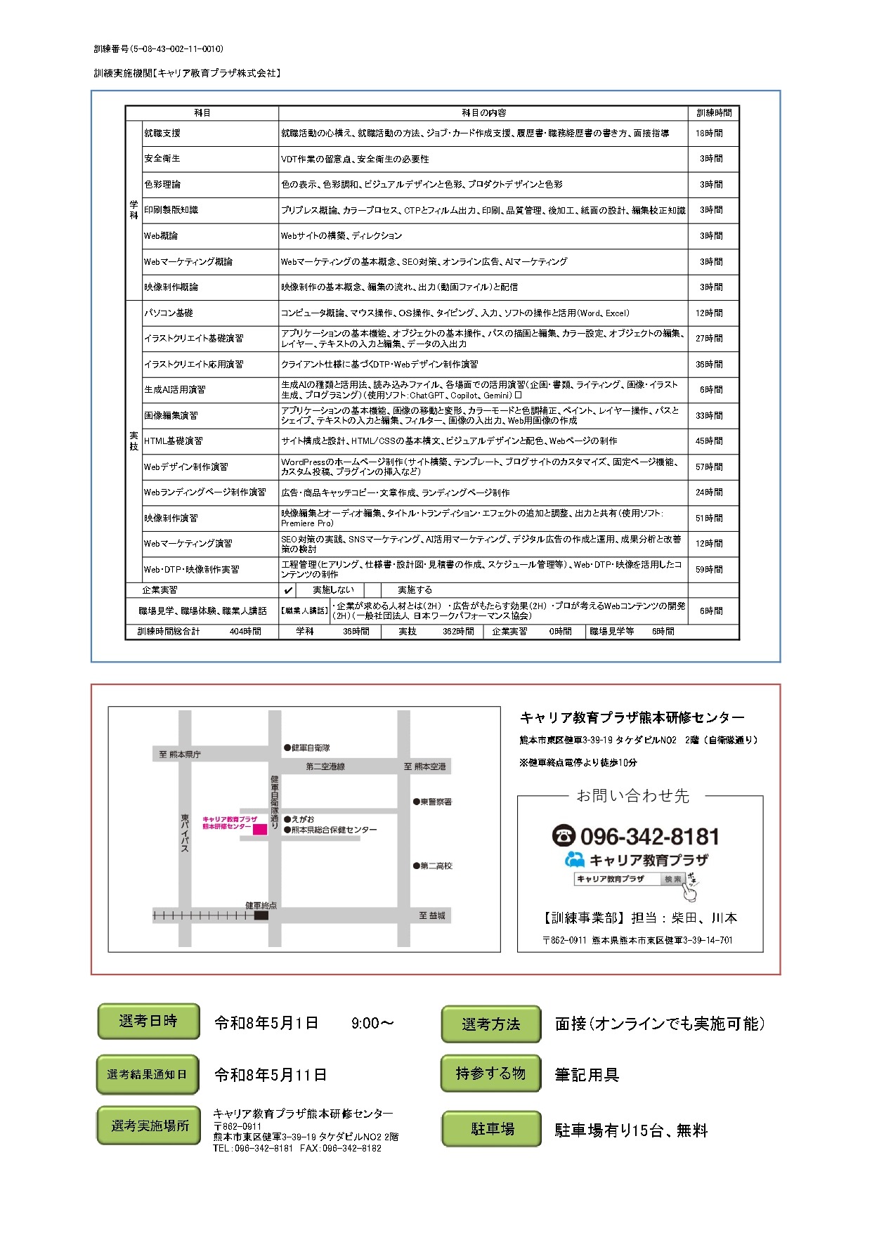 【訓練教室】通学時:当社熊本研修センター(熊本市東区健軍3-39-19-2F)